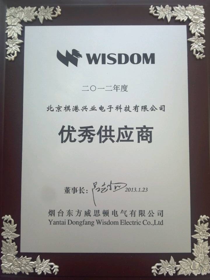 棋港青鳥辦代表棋港電有限公司于 2013年1月 23日參加了威思頓的十周年慶典, 同時,我司被評為東方威思頓的"優(yōu)秀供應(yīng)商". 附件是獎牌.