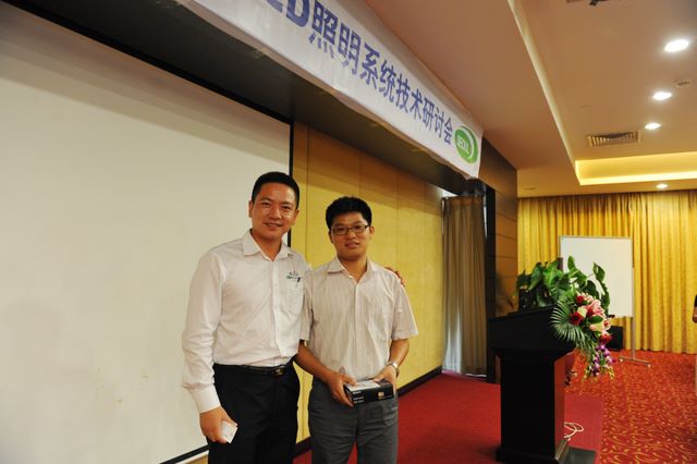 一如以往,有問(wèn)答及抽獎(jiǎng)環(huán)節(jié)。幸運(yùn)兒就是他,他可以從首爾半導(dǎo)體銷售總監(jiān)文興華手上接過(guò)精美禮品一份。