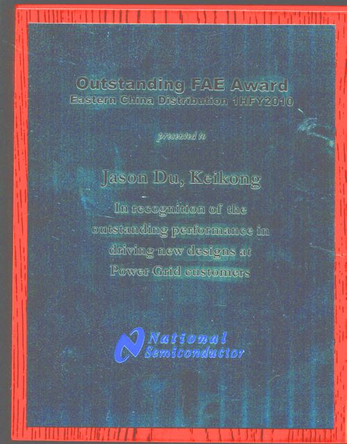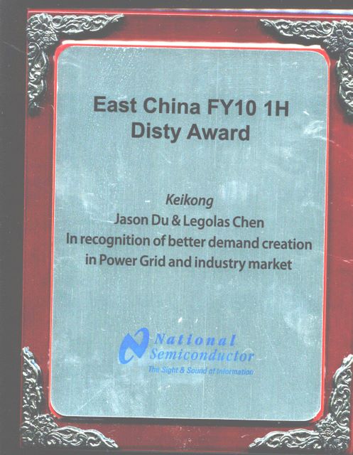 經(jīng)過各位同事的努力,在Q4CY09 棋港(上海) 獲得了NS華東授予的如下表彰